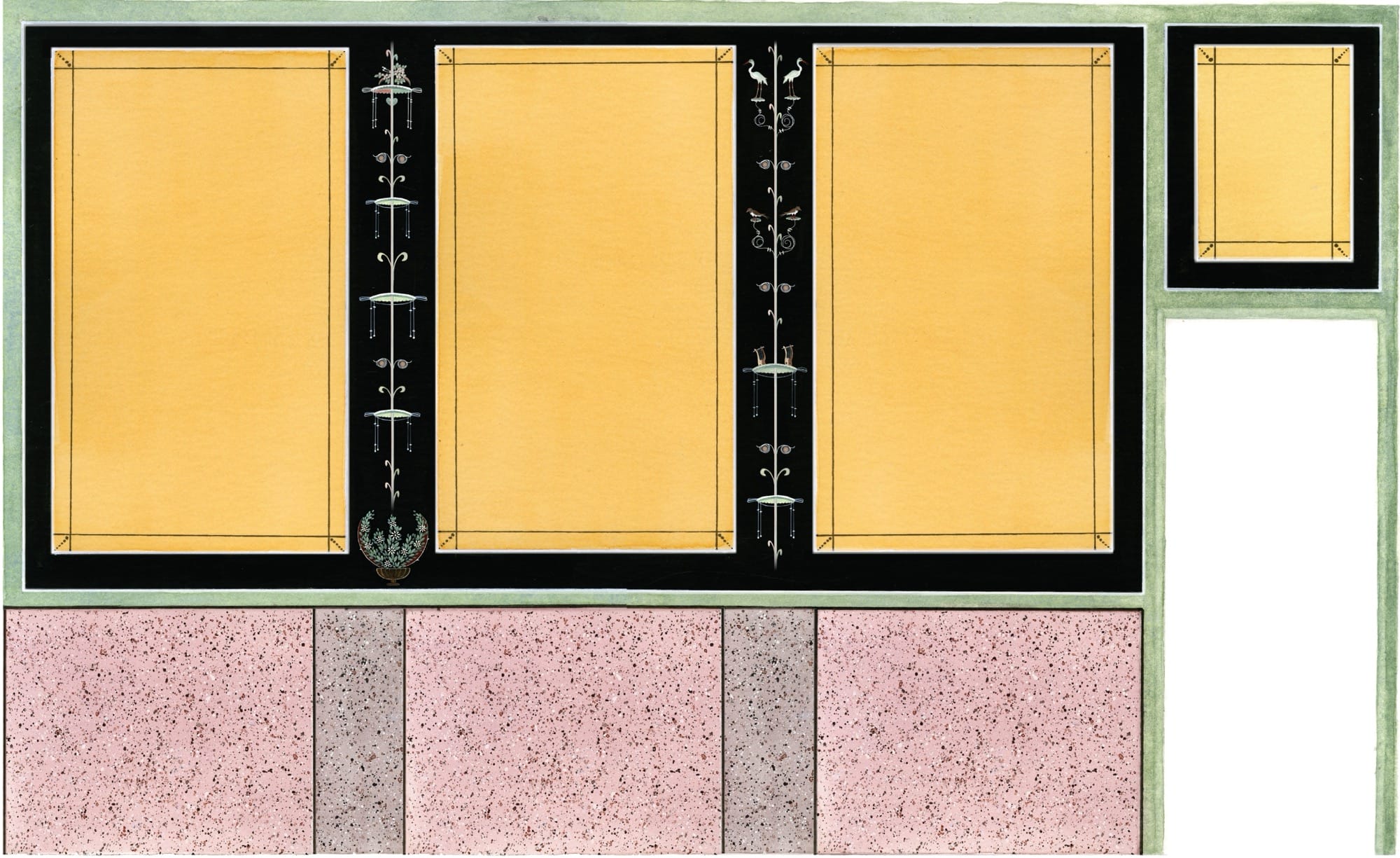 Even the most avid jigsaw fans will appreciate that this type of puzzle is a real mind-bender—there’s no picture to look at for comparison. But there are clues. This era of Roman painting commonly incorporated color panels with border motifs and elements that imitated stone slabs like porphyry without the expense or labor involved in hauling that much material. And while this work is fairly representative of the style, the use of the color yellow is particularly rare and found in only a few very luxurious buildings around the U.K.